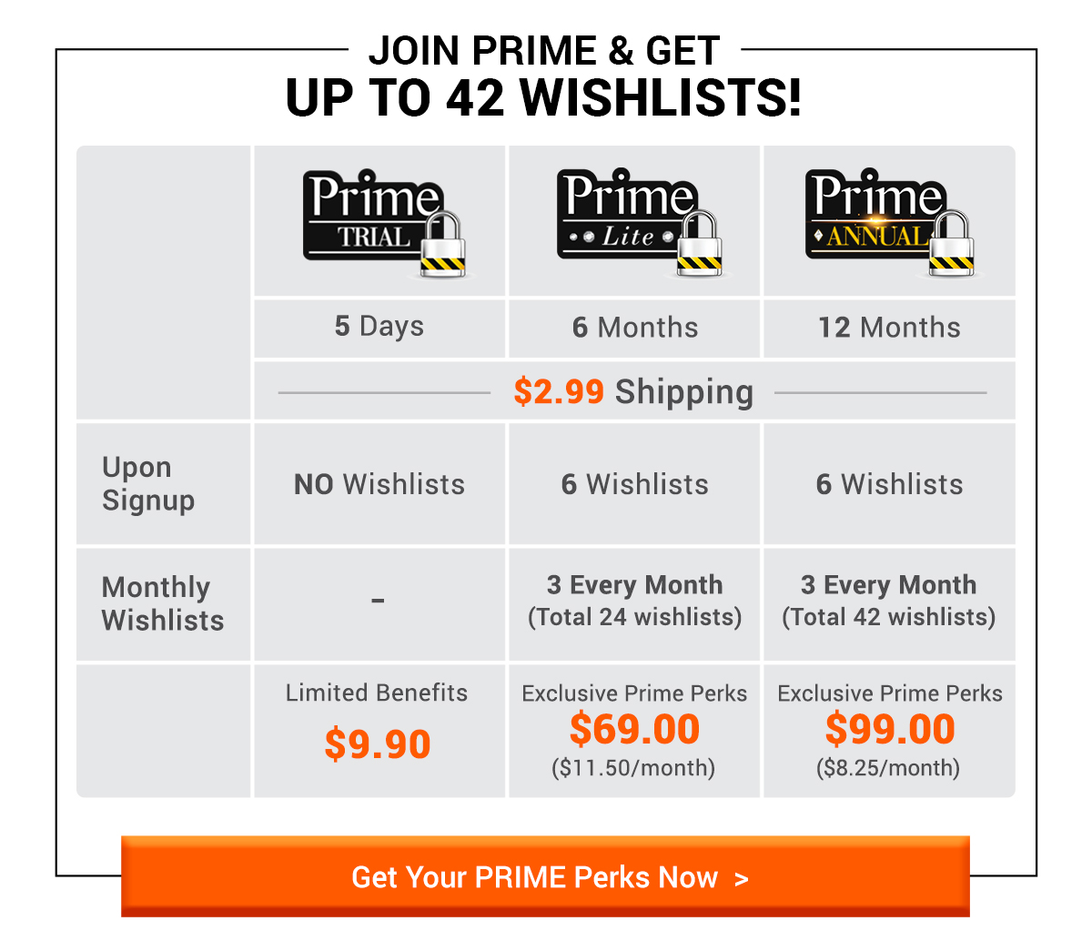 You may also refer to our Prohibited items list for a more comprehensive list of items that are not allowed to be shipped, which will not be approved under Prime Wishlist as well.